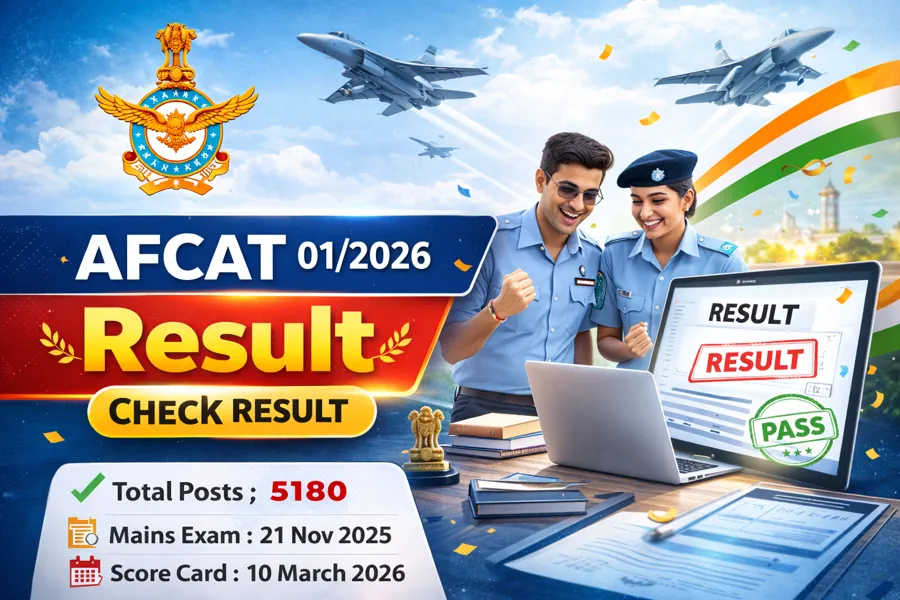 The recruitment process was conducted by Indian Air Force (Bhartiya Vayu Sena) under AFCAT 01/2026 Batch for commissioning into various branches starting January 2027. Online applications were accepted from 17 November 2025 to 19 December 2025, and the result has been officially declared on 11 March 2026. Candidates who had applied and appeared in the examination can now download their AFCAT 01/2026 Result from the official portal.