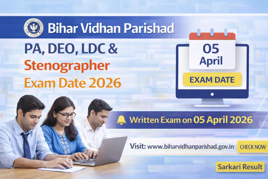 Bihar Vidhan Parishad (BVP), Government of Bihar, has announced the examination date for the recruitment of Personal Assistant, Data Entry Operator, Lower Division Clerk and Stenographer posts. Candidates who applied for this recruitment can now check the written exam schedule for the upcoming selection process. Want to know the exam date, vacancy details and eligibility criteria? Read the complete details below for Bihar Vidhan Parishad PA, DEO, LDC & Stenographer Exam Date 2026.