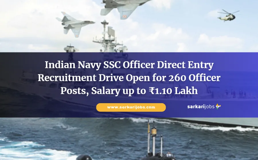 Indian Navy SSC Officer Direct Entry Recruitment Drive Open for 260 Officer Posts, Salary up to ₹1.10 Lakh