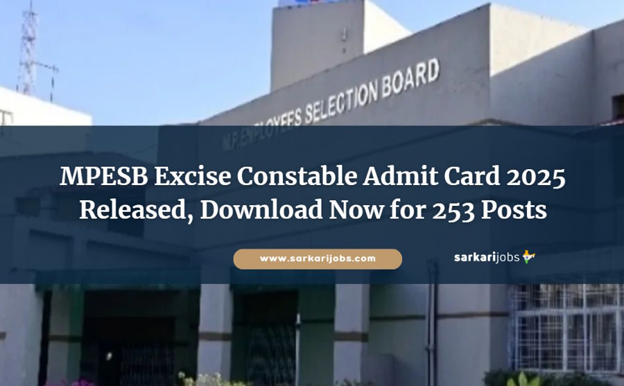 Madhya Pradesh Employees Selection Board (MPESB) has released the Admit Card for the recruitment exam of Excise Constable (Aabkari Sipahi). The recruitment drive aims to fill 253 posts across General, EWS, OBC, SC, and ST categories. Candidates who had applied online between 15 February and 01 March 2025 can now download their admit card for the written examination scheduled on 09 September 2025. To know how to download the admit card, exam schedule, and other important updates, see complete details below.