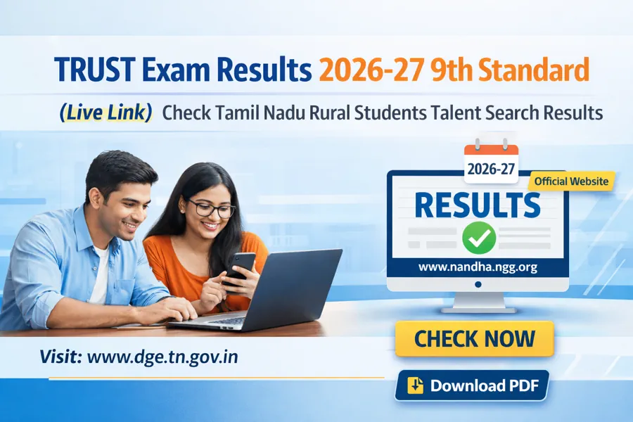 The Department of Government Examinations, Tamil Nadu conducts the Tamil Nadu Rural Students Talent Search Examination (TRUST) every year to identify talented rural students and provide scholarships to 9th standard candidates. Students who appeared for the TRUST Exam for the academic year 2026–27 are now waiting for the official result announcement and can check their result status and download details once released.