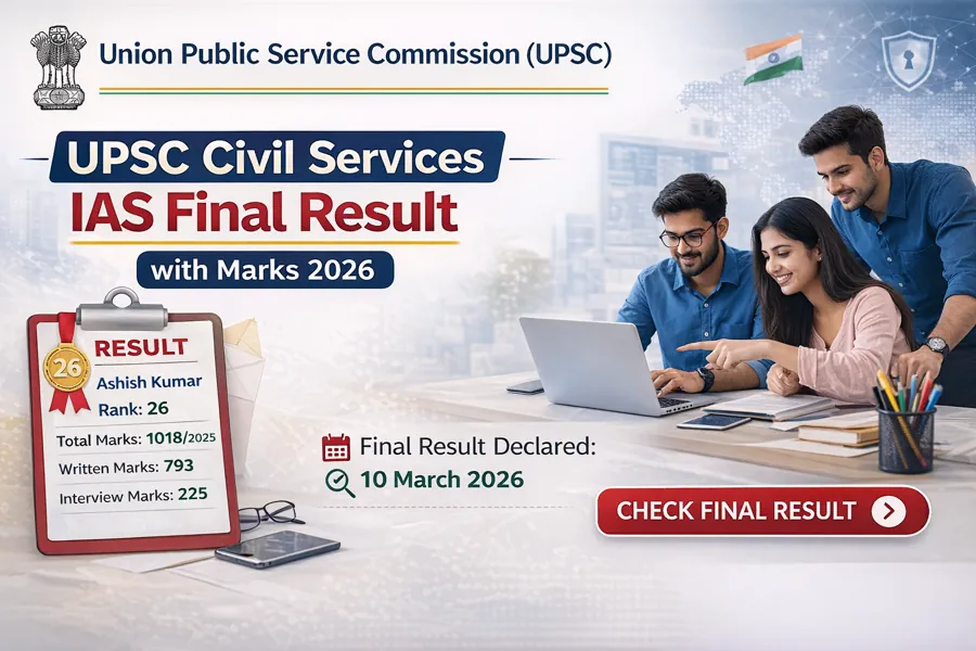 The online application process for UPSC Civil Services and Indian Forest Service Recruitment 2025 started on 22 January 2025 and continued until 21 February 2025. The preliminary examination was conducted on 25 May 2025, followed by the mains examination held in August 2025. Candidates who qualified the mains examination were called for the personality test (interview) conducted between 08 December and 19 December 2025. After completion of all stages of the selection process, UPSC declared the IAS Final Result on 06 March 2026 and the detailed marks of candidates were released on 10 March 2026. Candidates who participated in the interview stage can now download their final result and marks through the official UPSC website.