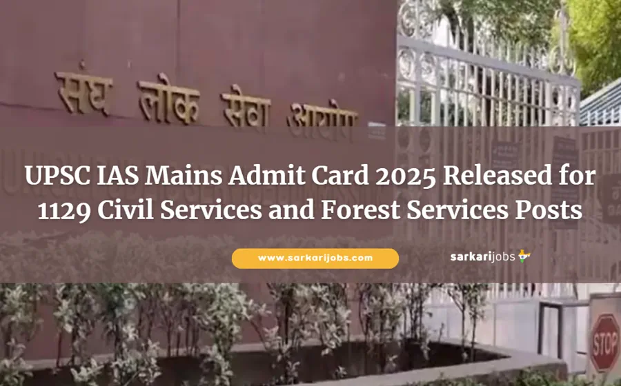 The Union Public Service Commission (UPSC) has released the mains admit card for the prestigious Civil Services (IAS) and Indian Forest Services (IFS) Examination 2025. This recruitment drive was launched for a total of 1129 posts including 979 for IAS and 150 for IFS. Candidates who cleared the preliminary examination held on 25 May 2025 are now eligible to appear in the mains exam, which will be held in August 2025. Those shortlisted can now download their UPSC Civil Services IAS Mains Admit Card 2025 from the official website. This is a crucial stage of the selection process before the final interview round.