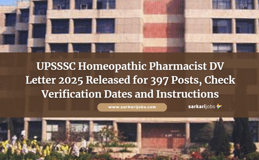 Uttar Pradesh Subordinate Service Selection Commission (UPSSSC) has issued the Document Verification (DV) Letter for candidates shortlisted for the post of Homeopathic Pharmacist under Advertisement No. 09-Exam/2024. The recruitment aims to fill 397 vacancies across different categories. The written exam was conducted earlier this year, and the result was announced on 2nd September 2025. The DV process will be held from 16th to 26th September 2025. Candidates who cleared the selection stages are now eligible to download their DV letters for the final verification process.