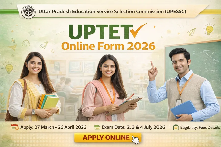 As per the official schedule, the online application process for UPTET 2026 will begin from 27 March 2026 and will continue till 26 April 2026. Candidates who meet the eligibility criteria can apply through the official portal. The UPTET examination will be conducted on 2, 3, and 4 July 2026. Applicants are advised to complete the application process within the deadline and prepare accordingly for the exam.
